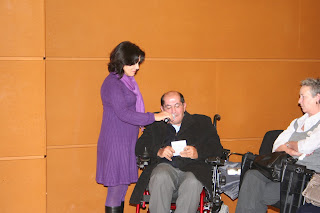 Su implicación es tanta que nos permite magnificar su destacada figura entre todos los dependientes conocidos a quienes nos ha regalado su asistencia. Batallador incansable, consciente de su posición ante la vida, transmisor de una alegría que a todos nos ha beneficiado con su inamovible postura, pues no es el primer caso que lo ha llevado a informar debidamente a sus compañeros para exigir de la administración que se les haga la rehabilitación que previamente les denegaban, consiguiendo que estas fuesen reales.
